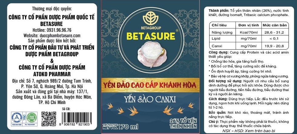 YẾN Betasure SỮA NON KIDS NEST Thành phần: Nước tinh khiết, Tổ yến thiên nhiên (26%), đường...